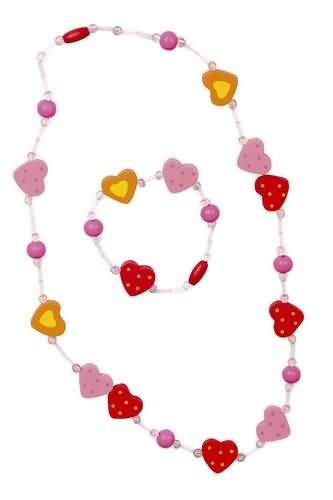 Ecco una bella serie di gioielli "cuore"! Pack include una collana e un braccialetto! Questi pezzi meravigliosi gioielli colorati ragazze delizia di legno piccoli! Cavi elastici facilitare la vestizione e svestizione per le damine!